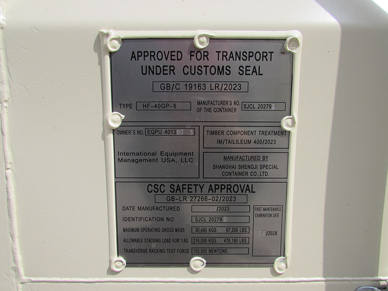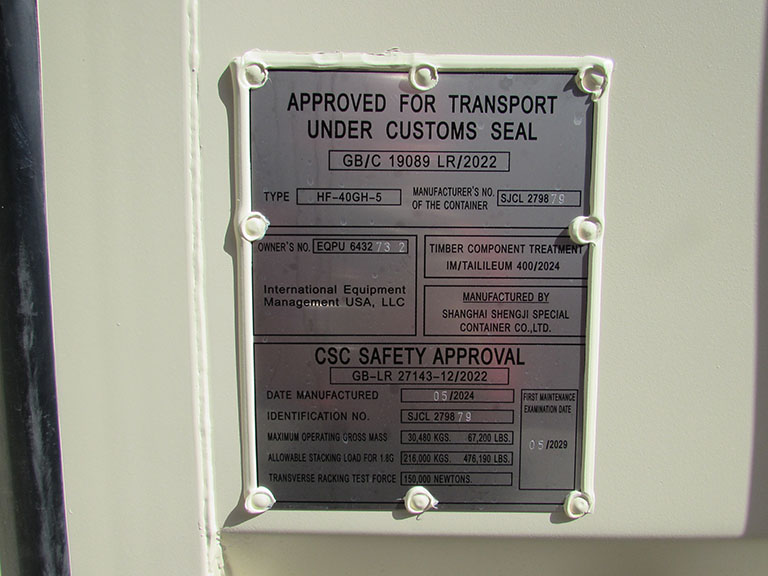 Our container's BIC code, "EQPU", is certified to comply with the ISO Standard 6346.