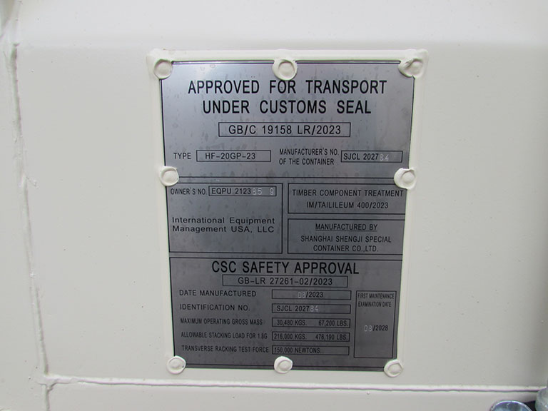 Our container's BIC code, "EQPU", is certified to comply with the ISO Standard 6346.